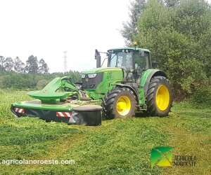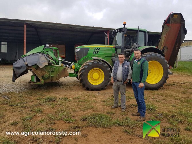 Agricola Noroeste con AgroBarreiro enrega a Trabajos agricolas y forestales Taboada S.L de Vilamaior Ordes (A Coruña ), John Deere 6195M con transmisión Command Quad y segadora frontal John Deere F310R.
