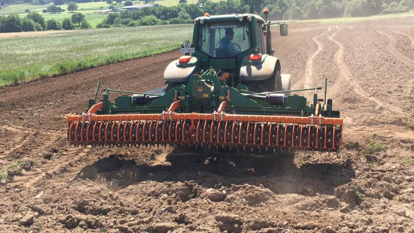 Millares Torron entrega a SAT AGROPEGAL, de Caraño (Pol-Lugo), grada rotativa, AMAZONE KG-5001-2 SUPER. con rodillo packer de 500 mm.