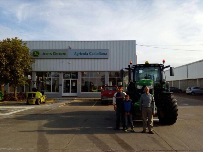 Comercial Agrícola Castellana SL Entrega JOHN DEERE 6155R con pala JD 663 R a Pablo y su hijo Eloy González, de Villagarcía de Campos (Valladolid).