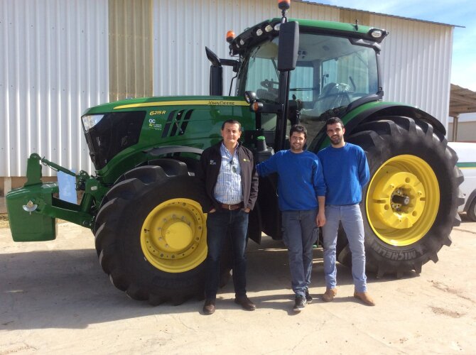 Agricola Castellana Entrega de tractor JOHN DEERE 6215 R Autopower a Omar y Héctor Sanchez Arroyo, de Peñaflor de Hornija (Valladolid).