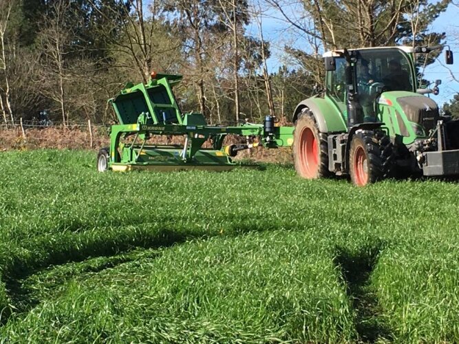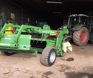 Millares Torron entrega segadora arrastrada Krone a servicios agricolas.