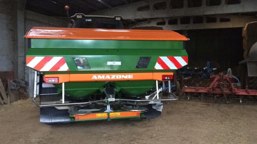 Millares Torron entrega a CASA RAMALLEIRA de Álvare (A Pastoriza), abonadoras centrífugas de doble plato, AMAZONE ZA-V SUPER 2700, con ordenador AMASPREAD, límiter, toldo y sobretolva L800. Carga máxima 3500 kg.