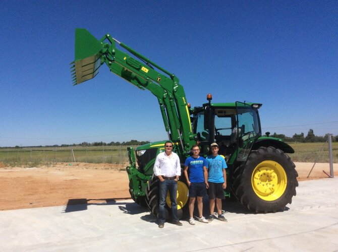 Comercial Agrícola Castellana entrega JOHN DEERE 6130R Autopower a 50, pala John Deere 663R y Autoguiado RTK Mobile a David y Javier Blanco Lajo, de Villamarciel (Valladolid)