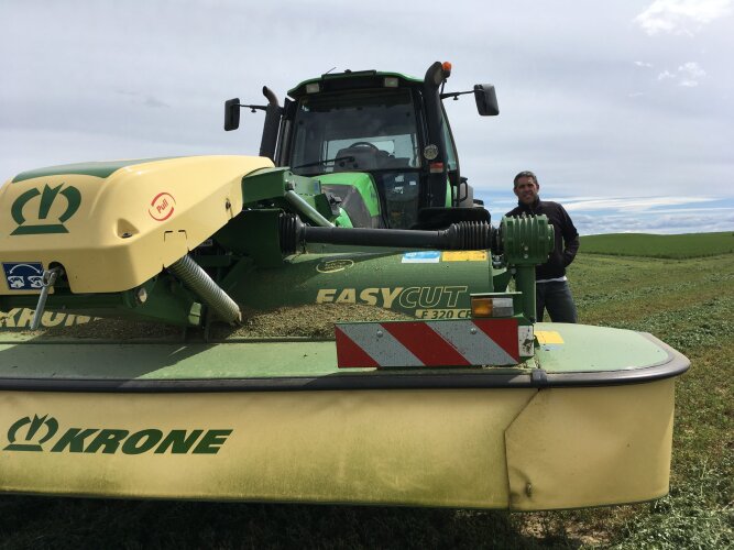 Farming Agrícola entrega Krone EasyCut F 320 CR a Javier González