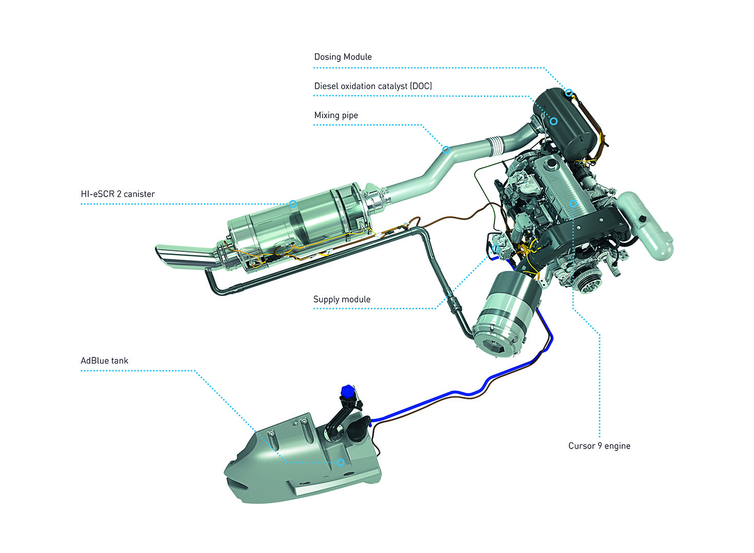 Las CX8.80 y CX8.90 cumplen ahora la normativasobre emisiones Fase V, que establece una nueva reducción del 40 % delcontenido de partículas respecto a la normativa anterior Fase IV. Los nuevoslímites de emisiones se obtienen gracias a los motores NEF 6 y Cursor 9 y a lanueva tecnología HI-eSCR2 desarrollada por FPT Industrial. Este innovadorsistema de postratamiento es una solución patentada que no precisamantenimiento y reduce al mínimo los costes de explotación. El motor Cursor 9incorpora un diseño simple sin EGR, garantía de la máxima productividad yfiabilidad.