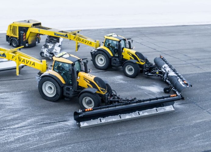 “Los tractores suponen una alternativa interesante para las flotas aeroportuarias cuando una anchura de trabajo de 4,5 metros es suficiente. Los tractores ofrecen un coste total de propiedad considerablemente inferior al de los camiones y son mucho más versátiles, ya que se pueden utilizar para otras tareas, como el soplado de nieve o la siega en verano”, ha comentado Tero Santamanner, especialista en equipo de maquinaria en Finavia.