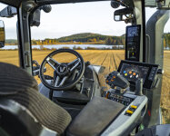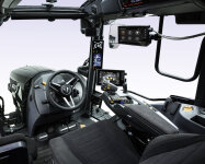 Nada más entrar en la cabina de lostractores de las series N o T de 5.a generación resulta evidente queel tractor se ha renovado por completo. La columna de dirección escompletamente nueva y ahora es más fácil ajustar la posición del volante. Laaclamada palanca del inversor de avance/marcha atrás de Valtra se haactualizado para que ahora sea más fácil cambiar de sentido cuando se utilizandiferentes mandos, como la palanca SmartTouch o el inversor TwinTrac. Elvolante es un poco más grande que antes, pero sigue teniendo un tamaño muymanejable, algo característico de los tractores Valtra.