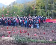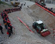 Máquinas forestales ofrecen en una zona de bosque, que se está desarrollando en un parque de ocio. Las trituradoras de piedra fueron demostradas en una cantera. Estos sitios estaban en las pintorescas montañas detrás de la fábrica SEPPI M..