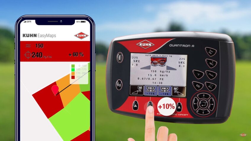 Con KUHN EasyMaps, empezar a modular la dosificación es muy sencillo. Tanto si la motivación es económica como agronómica o incluso medioambiental, la aplicación KUHN EasyMaps aporta nuevas características a la cabina y mejora la precisión y el confort de trabajo.