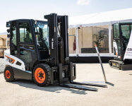 Las carretillas elevadoras de la marcaBobcat están representadas por el modelo D30S-9, que forma parte de la serie 9de carretillas elevadoras diésel premium de altorendimiento y bajo consumo de carburante. El compartimento ergonómico deloperador garantiza el control, la productividad y la reducción del cansancio.