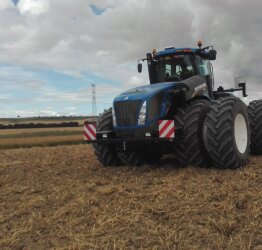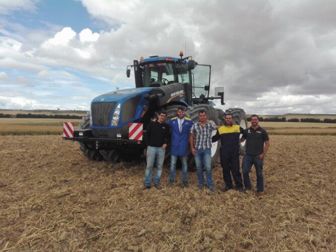 Pero este 2016 pasará a la historia de la marca en España por ser la primera vez que un tractor de la serie T9, el modelo T9.565, ha sido vendido en España, convirtiéndose en el tractor más potente que trabaja en España. En concreto se ha vendido en Navarra y más precisamente en Olite que es donde se halla la sede de la empresa Agriderma S.L., lugar donde desarrolla toda su actividad agrícola. Allí precisamente es donde va a estar trabajando este tractor New Holland T9.565, en la finca que dicha empresa gestiona y que es considerada una de las fincas más grandes de toda Navarra, con una extensión de 1.350 ha, de las cuales cuenta con 80 ha. de regadío y donde ya están proyectados futuros nuevos regadíos. Dentro de la amplia variabilidad de productos que trabajan en esta finca destaca por supuesto todo lo relacionado con el cereal (cebada y trigo) y leguminosas.