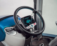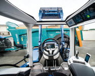 El interior de la cabina ofrece un entorno operativo ordenado, con todoslos mandos fundamentales en el reposabrazos integrado y los parámetrosadicionales controlados a través de la pantalla interactiva de la tapicería deltecho. El cuadro montado en el eje fijo del volante se desplaza con él cuandosube o baja para dar cabida al tamaño del operador, lo que asegura la óptimavisibilidad de la información de la pantalla en todas las posiciones.