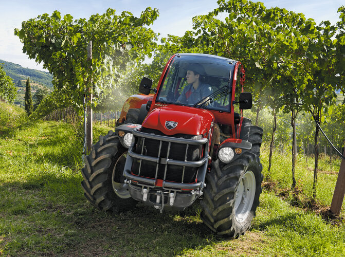 Tractor rígido isodiamétrico de 31 CV con motor Yanmar de 3 cilindros (par máx. a 1700 r/min) que iguala, a escala reducida, todas las características de los tractores AC de alta gama. Consta de un bastidor oscilante ACTIO™, baricentro bajo y gran despeje al suelo. A pesar de su compactibilidad, ofrece un puesto de conducción amplio, ergonómico y confortable, incluso en el acceso a bordo. Diseñado para desempeñar actividades de mantenimiento o de cultivo en fincas agrícolas, huertos e invernaderos; se caracteriza por su perfil afilado, funcional durante las tareas entre vegetación, y su “morro bajo” que proporciona una visibilidad frontal perfecta. El capó cuenta con una amplia parrilla de acero que asegura un intercambio térmico excelente. Su sólida defensa delantera, que ejerce de contrapeso y parachoques, tiene integrado un enganche para remolque. Posee una toma de fuerza de 540 r/min que se sincroniza con todas las velocidades del cambio y un elevador con capacidad de hasta 850 kg.