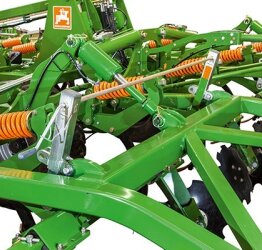 Como protección contra sobrecargas Amazone ha provisto a esta nueva gama de producto de dos alternativas distintas, la primera de ellas y más indicada para nuestro país por las características de nuestros terrenos fuertes y pedregosos es el sistema de protección mediante muelle presurizado que aguanta hasta 600 kg de presión y 300 mm de desviación máxima antes de saltar el mecanismo fusible, garantizando un trabajo cómodo y seguro.
