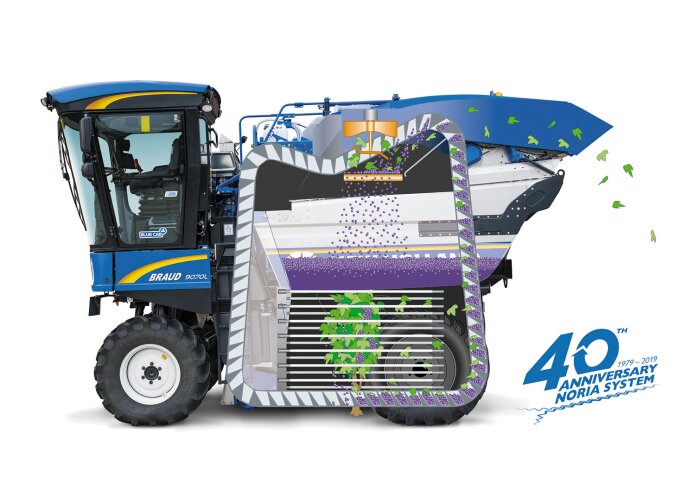 Las norias fueron la primera innovación de las vendimiadoras Braud que recibió una medalla deoro en la feria SIMA en 1980, convirtiéndose en la vendimiadora más vendida de todos lostiempos, con más de 2.000 unidades suministradas en menos de cuatro años.