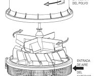 La fuerza centrífuga generada por este ventilador separa laspartículas del aire, haciéndolas deslizar alrededor del perímetro interior dela cubierta superior y extrayéndolos a través de la ranura del filtro.