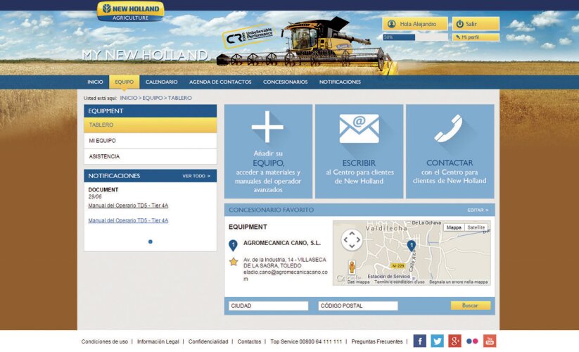New Holland presenta para el mercado español una nueva sección dedicada a sus clientes, www.mynewholland.com Tras registrarse, los clientes podrán acceder a servicios personalizados e información detallada para aprovechar al máximo sus flotas de máquinas New Holland en su actividad agrícola diaria.