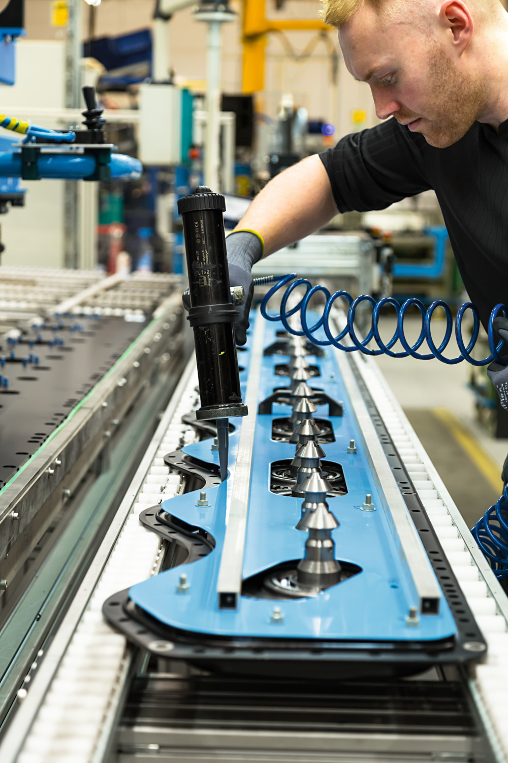 ∑ DISCO 1100 RC BUSINESS con acondicionador de rodillos de poliuretano para un acondicionado cuidadoso con rodillos de poliuretano que agarran entre si en forma de V – ideal para material de cosecha rico en hojas como la alfalfa. La distancia de los rodillos se puede modificar cómodamente con la llave de carraca suministrada. La transmisión doble de serie con engranaje para cizallas ofrece un flujo de material homogéneo, también con grandes cantidades de cosecha.