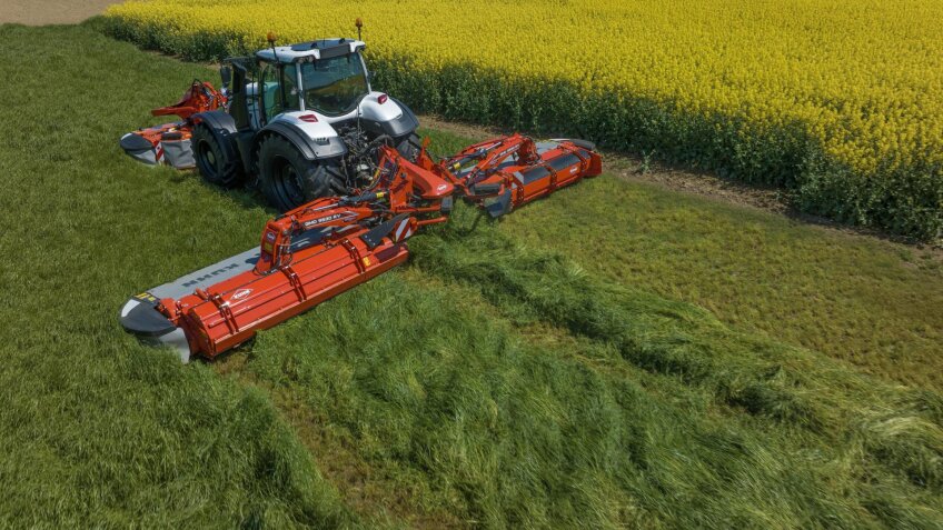La nueva segadora de discos con sinfín agrupador GMD 9530 RVcombina siega y formación de hileras en una sola pasada, aumentando laproductividad y reduciendo los costes.