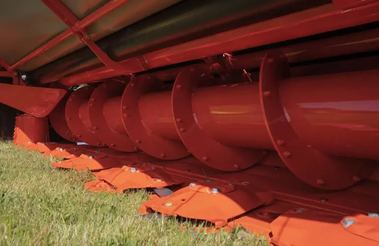 Descubre una segadora diseñada para trabajar en lascondiciones más exigentes. Los sinfines agrupadores y las barras de corte seaccionan de manera independiente mediante un cardán y un cárter, y estánprotegidos por un embrague de levas automático y bulones de cizalladura. Estediseño confiere a la máquina una excelente capacidad.