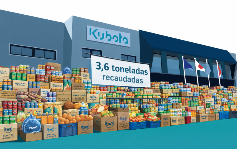 Kubota España ha concluidocon éxito su participación en la Campaña del Banco de Alimentos 2025, lograndouna recaudación total de 3,6 toneladas de alimentos en este fin de año, queserán destinadas a personas y familias en situación de vulnerabilidad a travésde la red del Banco de Alimentos.