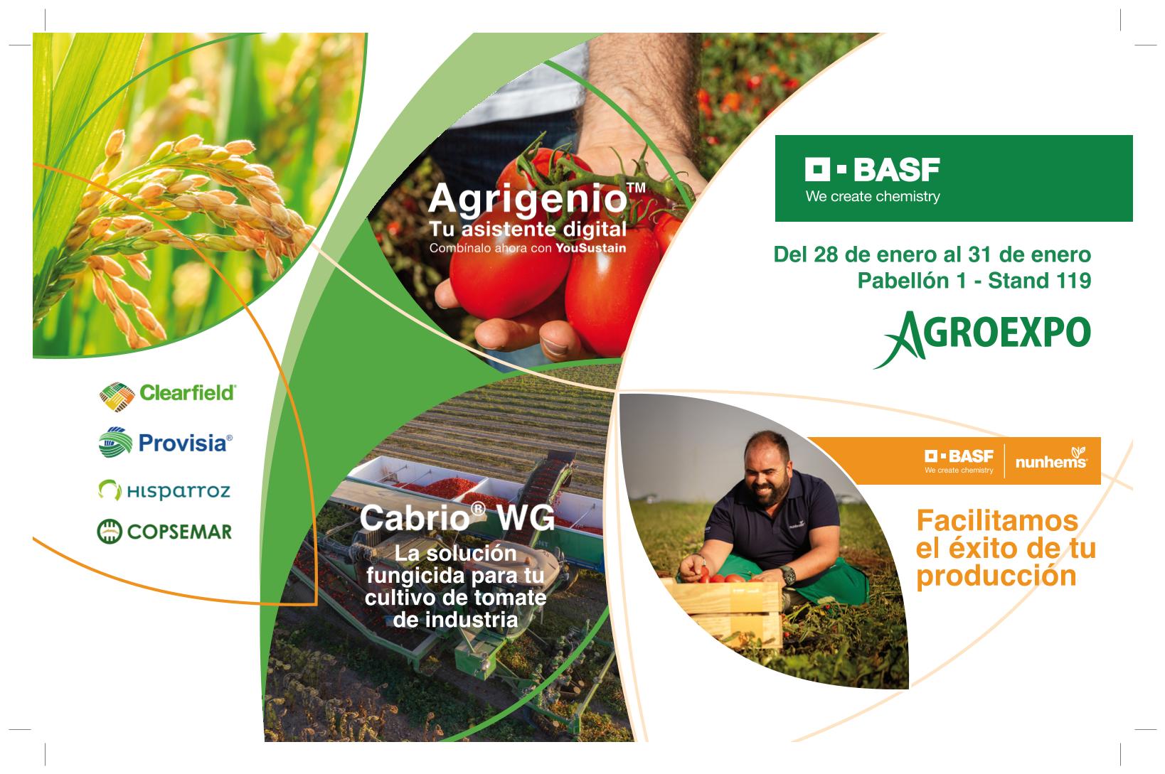 BASF participa del 28 al 31 de enero próximos enuna nueva edición de la Feria InternacionalAgroexpo, en Don Benito (Extremadura). Por tercer año consecutivo, la multinacionalacude a la cita con el objetivo de mostrar sus soluciones integradas parados cultivos claves en la región: el tomate de industria y el arroz.