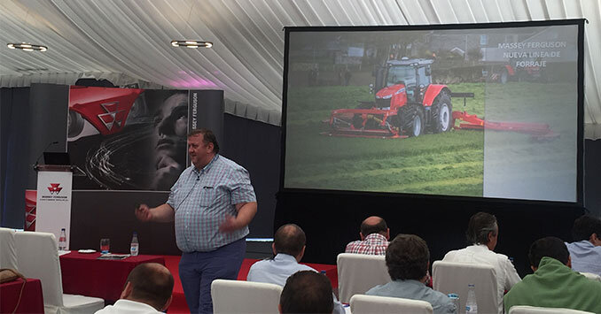 Durante la presentación, Miguel Ángel Menéndez, Harvesting Business Manager, hizo un análisis de la situación actual del Mercado de la maquinaria de cosecha y forraje, así como del posicionamiento de Massey Ferguson en este mercado. La reunión continuó con la presentación de las nuevas líneas de segadoras, rastrillos y rastrillos hileradores y henificadores.