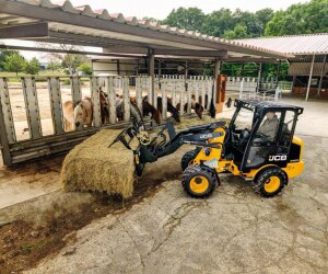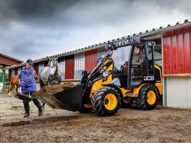 La nueva JCB 403 Agri es una cargadora con chasis articulado de 0.3 m3 capaz de trabajar de forma eficiente en lugares con poco espacio y alrededor de edificios, en una gran variedad de empresas rurales, desde unidades porcinas y avícolas hasta vaquerías, viveros de plantas y centros ecuestres.