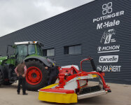 Otra de las novedades expuestas fue la segadoraNOVACAT A10, también de Pöttinger, que establece un nuevo estándar de calidaden vida útil, seguridad de uso, rentabilidad y confort. Esta segadora sepuede usar en combinación con una segadora frontal de 3 o 3,5 m (alcanzandoanchos de trabajo de 8,8 a 10,02 m) y es extremadamente adaptable: undesplazamiento lateral de 400 mm en cada lado aporta el solapamiento óptimoconsiguiendo así una perfecta calidad de corte.